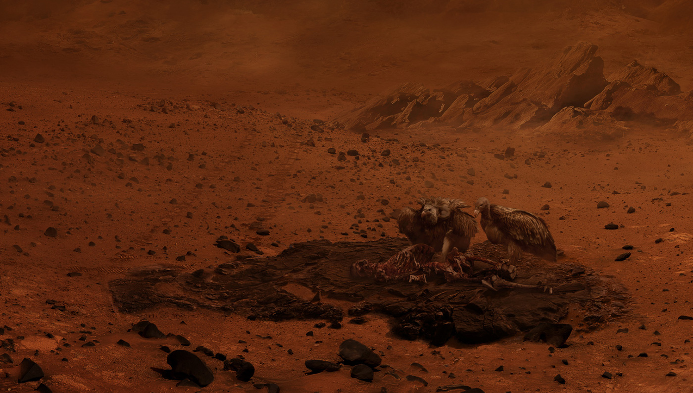 Matte-painting of a far, dirty and rigid place. Used around 25 photo to make it. About 20 hour working with 200 layers.
