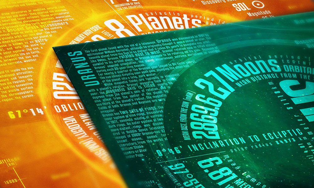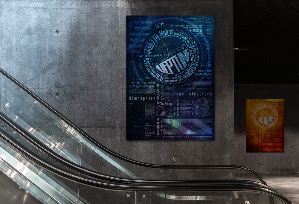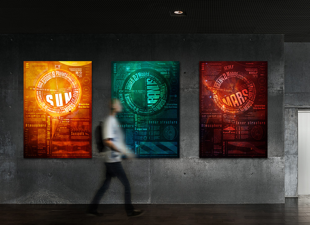 « backSome infographic poster about our Solar System's planets. To place the planet's data in a ring like way was the first concept. But then it builded a complete infographic poster for each planet.