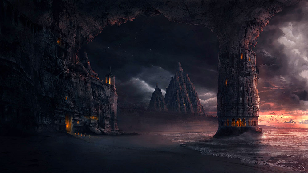 Matte-painting of a forgotten place at the far side of the world. A retreat for real holy peoples. Used 48 photo to make it. About 45 hour working with 440 layers.